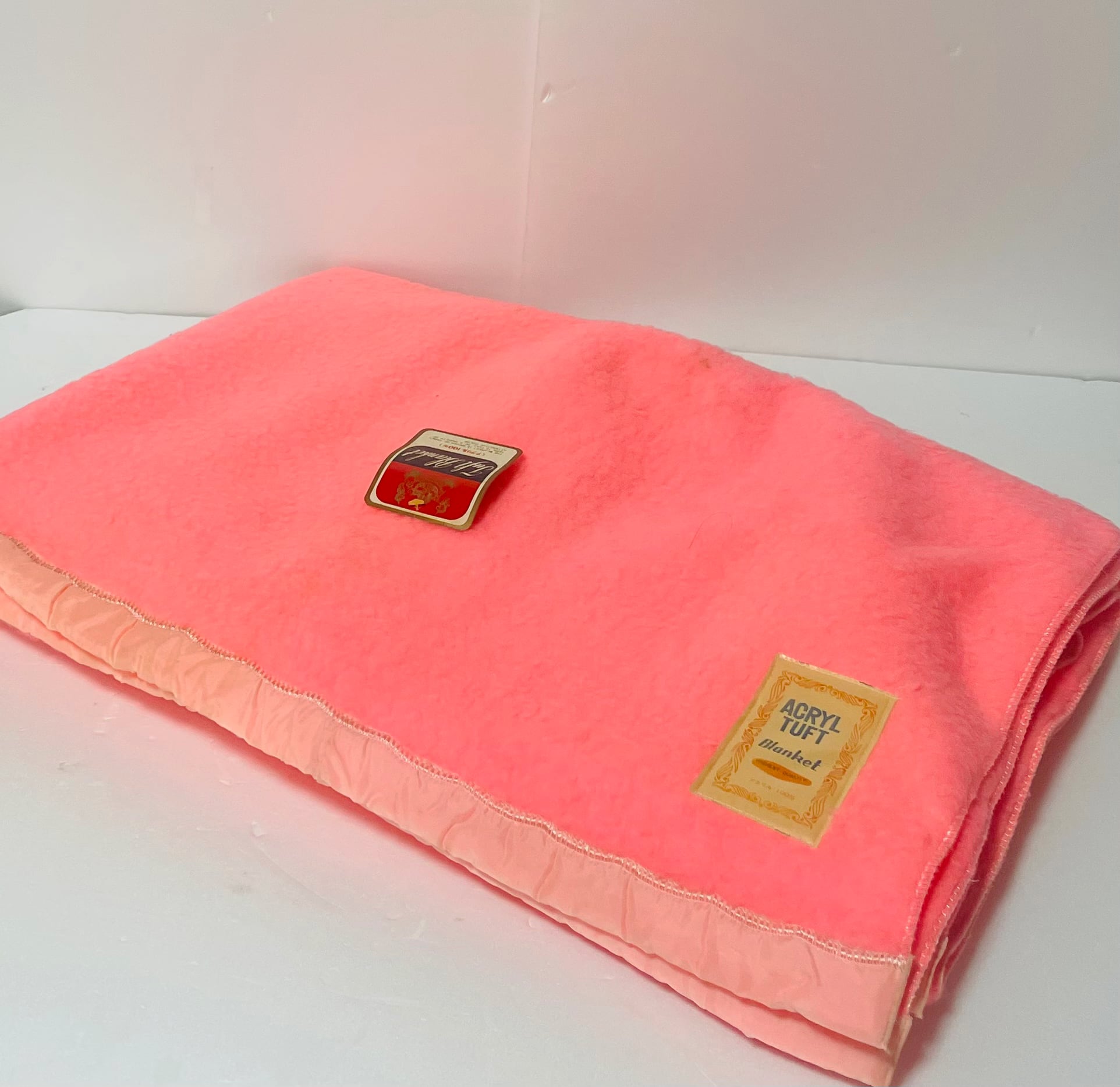 レトロな蛍光ピンク色の布団毛布です